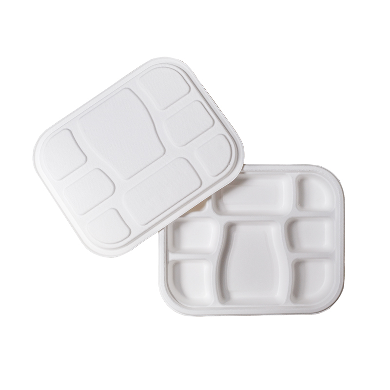 Functional and Versatile Design: This meal tray features eight compartments, making it perfect for serving a complete meal with separate sections for main courses, side dishes, desserts, and sauces or condiments. Its practical design is well-suited for restaurants, cafes, catering services, and even home use. The natural appearance of sugarcane bagasse enhances food presentation, making it suitable for a variety of dining settings.